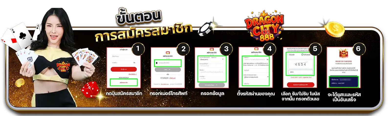 สำหรับผู้ที่สนใจเริ่มต้นเดิมพันกับ DRAGONCITY888 สามารถสมัครสมาชิกได้ง่ายๆ ผ่านหน้าเว็บไซต์ ใช้เวลาเพียงไม่กี่นาที ด้วยระบบที่รองรับทั้งคอมพิวเตอร์และมือถือ ทำให้สามารถเข้าเล่นได้ทุกที่ทุกเวลา เว็บไซต์นี้จึงเป็นตัวเลือกที่ดีสำหรับผู้ที่ต้องการประสบการณ์การเดิมพันออนไลน์ที่ครบครัน สะดวก และปลอดภัย